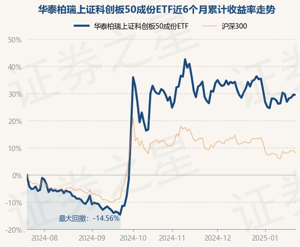本站消息,1月22日,华泰柏瑞上证科创板50成份ETF最新单位净值为1.0056元,累计净值为0.7022元,较前一交易日下跌0.1%。历史数据显示该基金近1个月下跌3.57%,近3个月下跌1.13%,近6个月上涨29.45%,近1年上涨30.99%。该基金近6个月的累计收益率走势如下图: